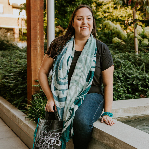 Eco Scarves dazzle with their ultra-soft feel and vivid colors, all the while utilizing eco-friendly materials to accentuate the stunning Indigenous designs. These scarves are made entirely from recycled plastic bottles, demonstrating a dedication to environmental sustainability.
