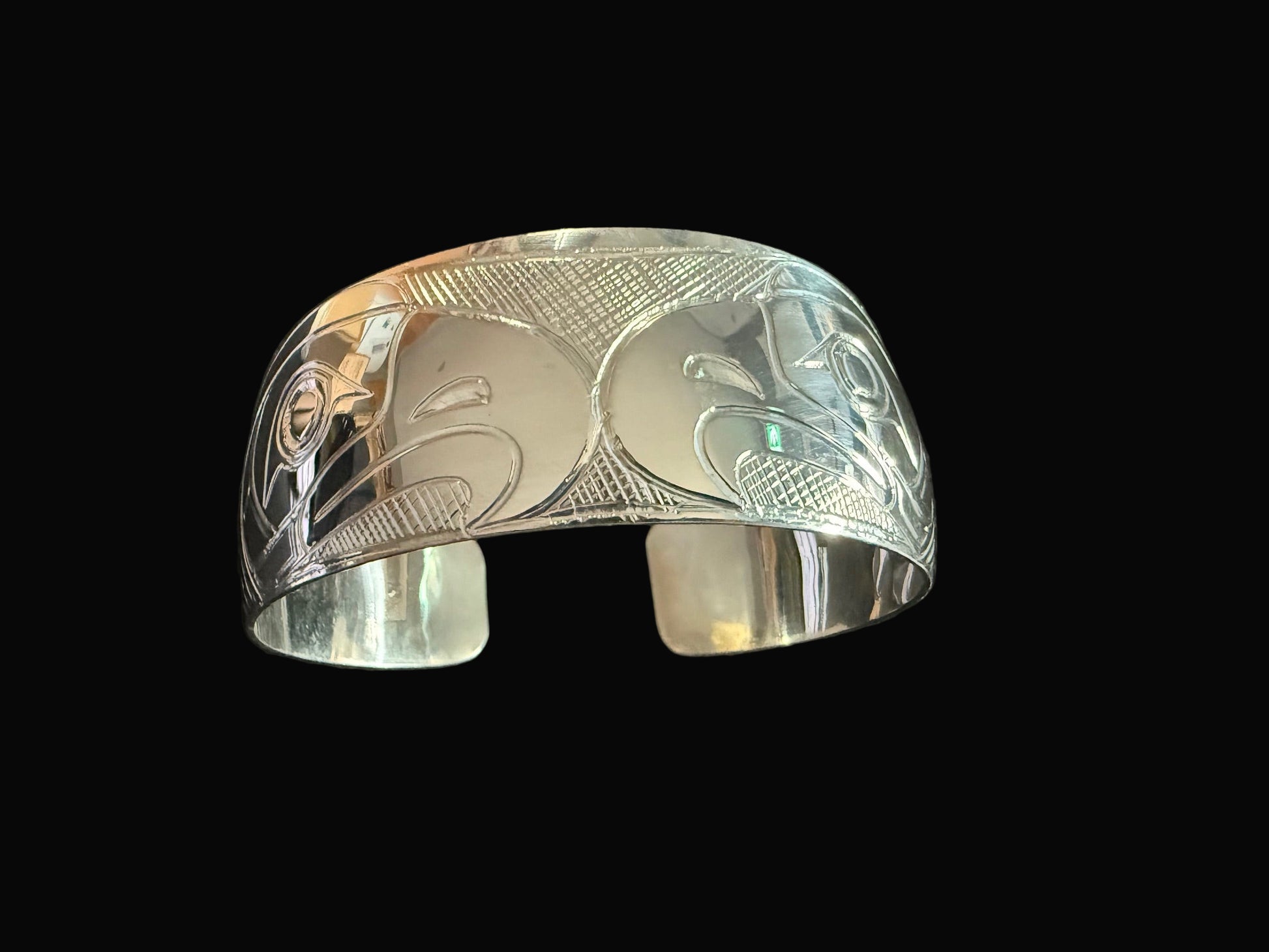 Norman Seaweed was born in Alert Bay, a picturesque fishing village on the northeastern coast of Vancouver Island. This region represents the Kwagiulth Nation, a tribe primarily located in the southern part of the province. His mother’s family is from Village Island, and his father’s family is from Turnour Island. In 1978, Norman trained in jewelry carving under Lloyd Wadhams. He had a deep interest in drawing, which led him to wood carving and eventually to working with silver and gold. Norman’s brothers, Alfred, Paddy, and Rodney, are all skilled silver carvers.