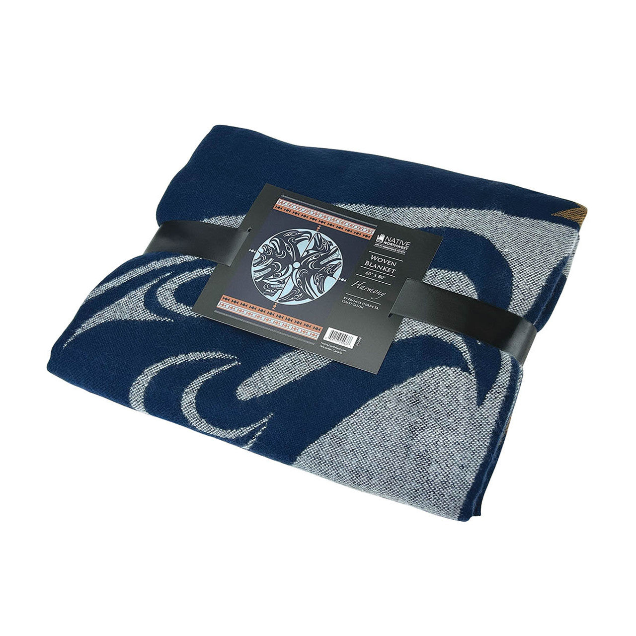 Our Woven Blankets are one of our best-selling products for a reason. Soft and stunning, surround yourself in beautiful art while you cozy up. Great for home use or ceremonies, these Indigenous-designed blankets make the perfect gift and even come packaged with a ribbon for that very reason.